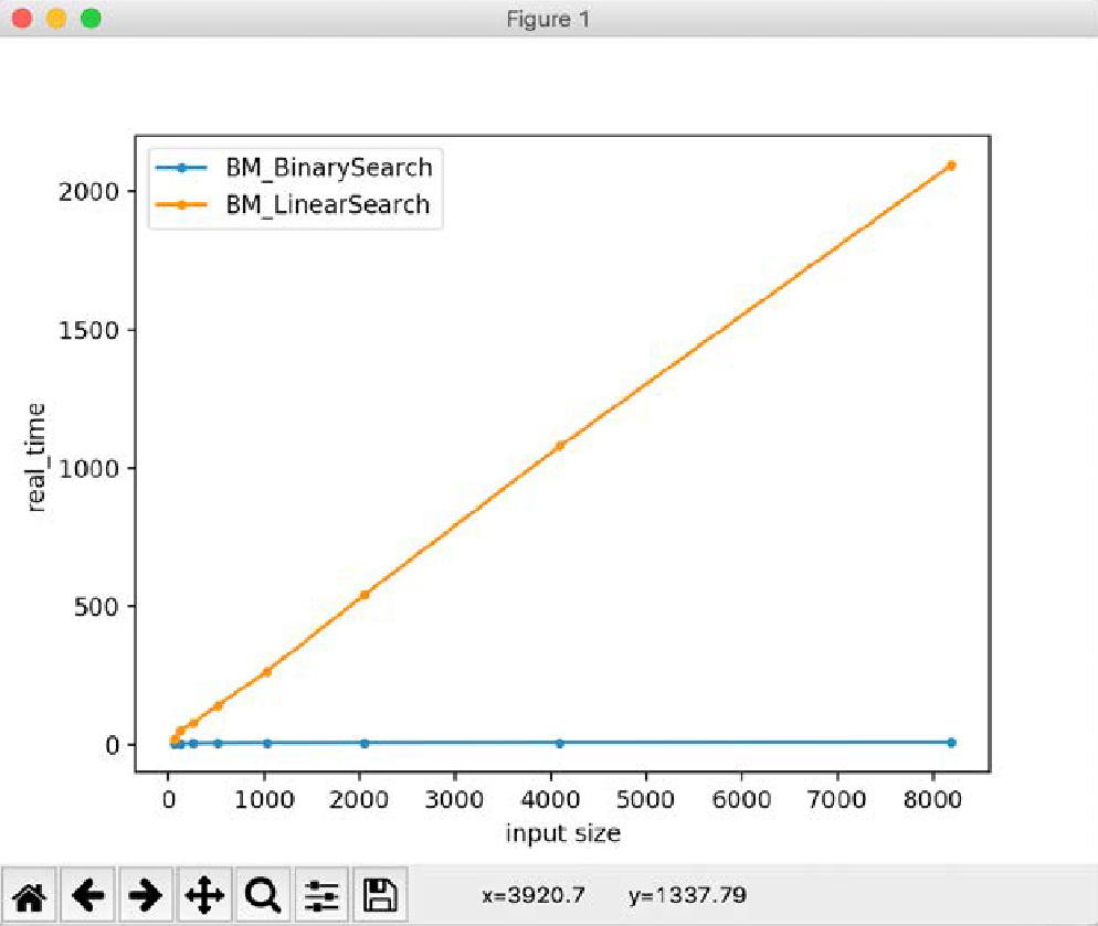 linear_search()函数,我们无法获得具有统计稳定性的结果。 - 测试不同的输入大小很麻烦。