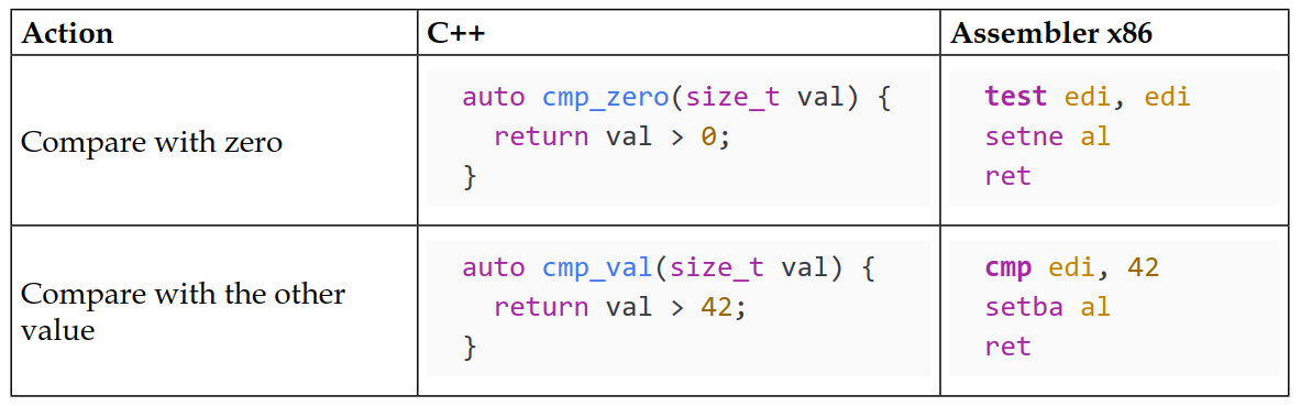 “与零比较”优化 ($\text{“Compare with zero” optimization}$)