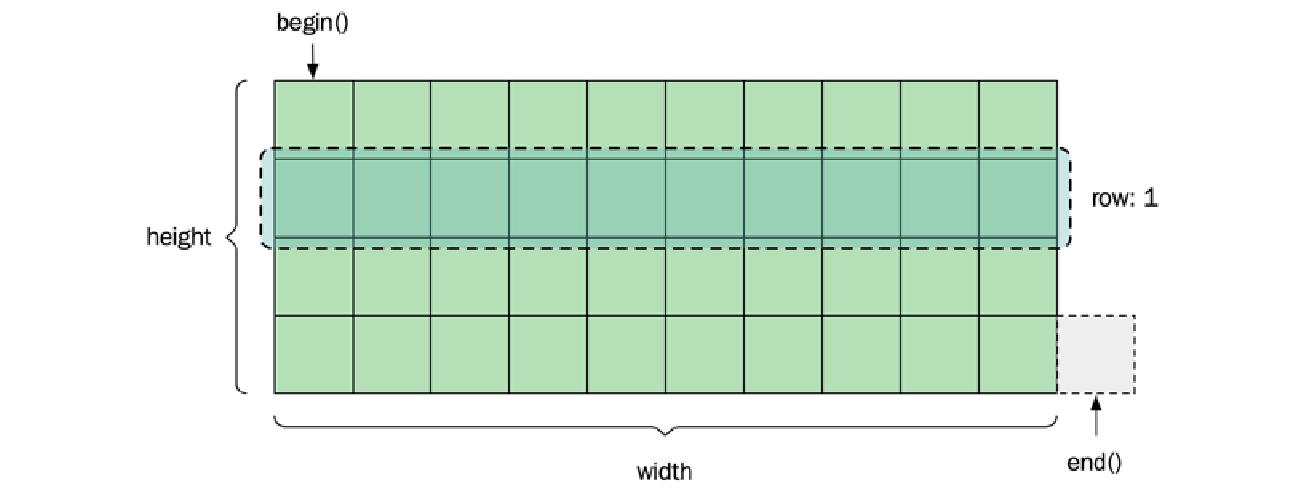 这段代码片段也演示了我们如何使用前面定义的 print() 函数。 transform() 算法将对输入范围内的每个元素调用一次我们的 $\text{lambda}$。为了指定输出的存储位置,我们向 transform() 提供了一个输出迭代器,即 out.begin()。我们将在本章后面详细讨论迭代器。