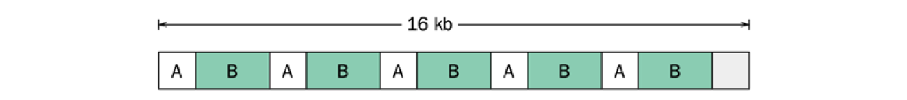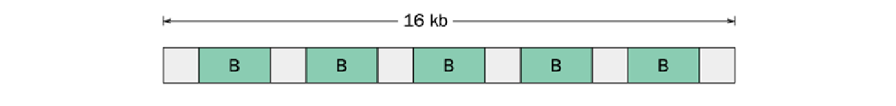 理解内存碎片化问题的一个简单方法是看一个内存碎片化如何发生的例子。假设我们有一个 16 KB 的小连续内存块,我们正在从中分配内存。我们正在分配两种类型的对象:类型 A(1 KB)和类型 B(2 KB)。我们首先分配一个类型 A 的对象,接着是一个类型 B 的对象。这个过程重复,直到内存看起来像下面的图: