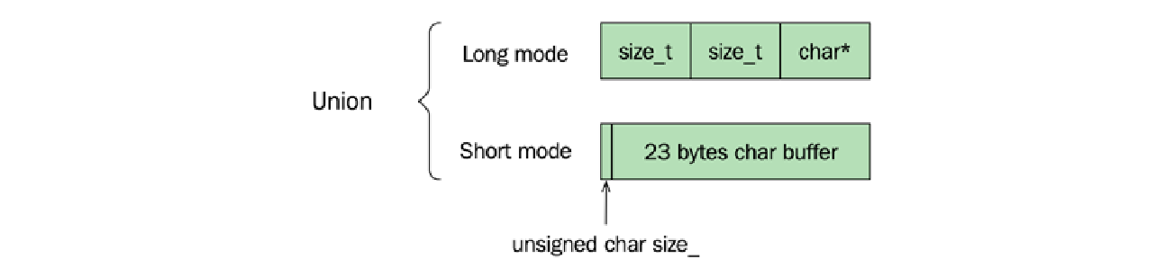 检查 libc++ 中 std::vector 的实现,我们可以看到它使用了一种精妙的类型,称为 compressed pair(压缩对),它反过来是基于空基类优化(empty base-class optimization)来消除通常由空类成员占用的不必要存储空间的。我们在这里不涵盖细节,但如果你感兴趣,可以查看 Boost 版本的 compressed_pair。